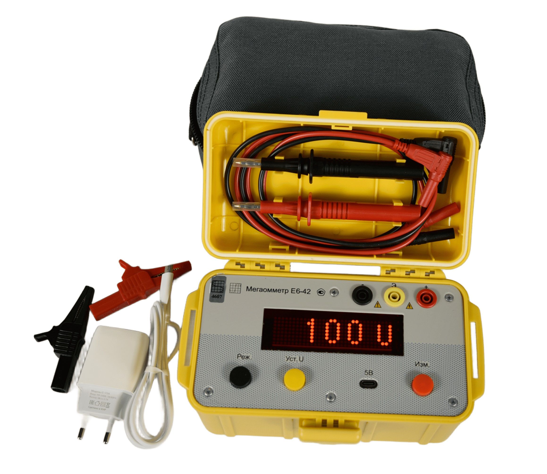 Мегаомметр Е6-42 предназначен для измерений сопротивления изоляции, напряжения постоянного и переменного тока.